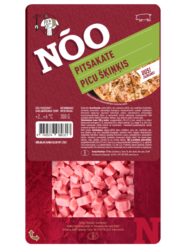 cūkgaļa 80%, ūdens, sāls, stabilizētāji: difosfāts; skābuma regulētājs: trifosfāts; glikoze, antioksidants: nātrija eritorbāts; konservants: nātrija nitrīts