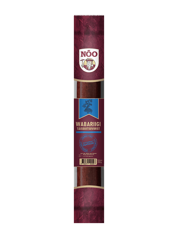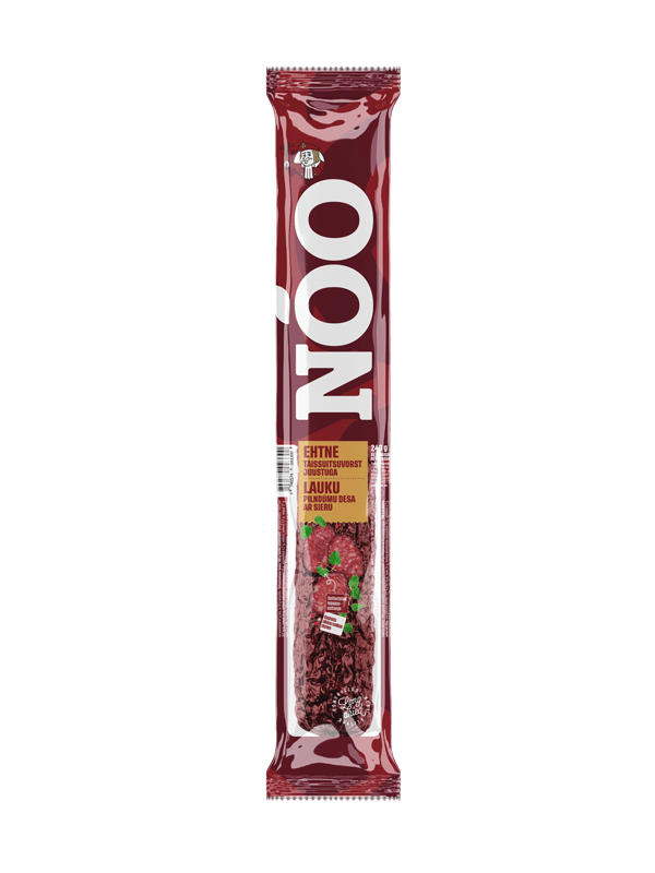 sea- (57%) ja veiseliha (31%), seapekk, seakamar, JUUST 8% [sh PIIM, juuretis, LAKTOOS, säilitusaine (kaaliumnitraat)], seasüda, kuivikupuru (sh NISUjahu), sool, stabilisaatorid (difosfaat, rasvhapete mono- ja diglütseriidid ja estrid), glükoos, lõhna- ja maitseained, vürtsid (sh SINEP), antioksüdandid (naatriumisoaskorbaat, askorbiinhape), happesuse regulaatorid (trifosfaat, naatriumatsetaat, sidrunhape, glükoondeltalaktoon), pärmiekstrakt, maltodekstriin, toiduvärv (karmiin), säilitusaine (naatriumnitrit).Võib sisaldada vähesel määral muna ja selleri jälgi.